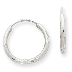 14K White Gold 1.5x16mm Diamond-Cut Endless Hoop Earrings