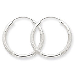 14K White Gold 2x20mm Diamond-Cut Endless Hoop Earrings
