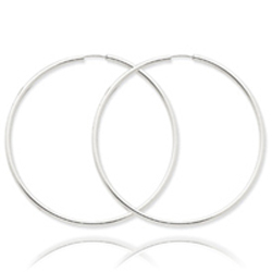 14K White Gold 2x65mm Polished Endless Hoop Earrings