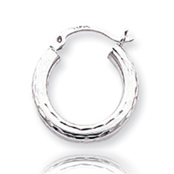 14K White Gold Diamond-Cut 3x19mm Round Hoop Earrings