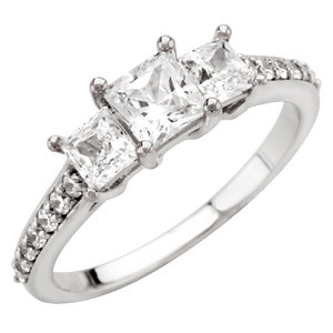 14K White Gold Accented Three Stone Princess Semi Mount Engagement Ring