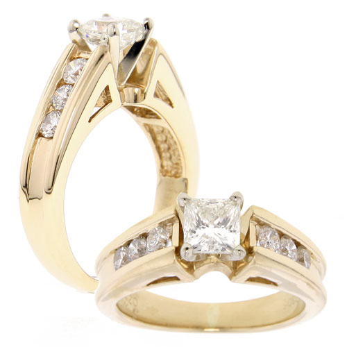 14K Yellow Gold Princess Cut Diamond Engagement Ring