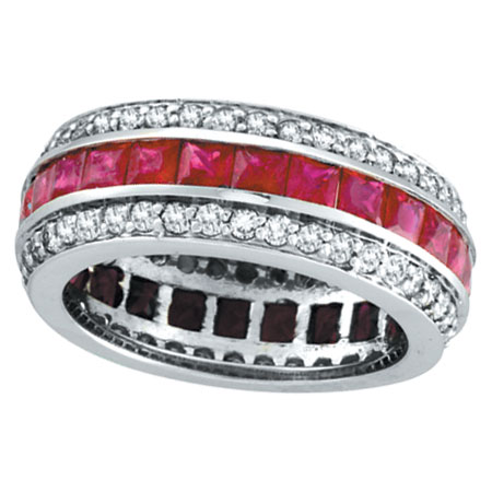 14K White Gold 2.39ct Diamond and Ruby Eternity Band