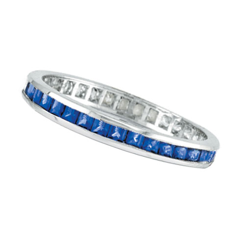 Picture of 14K White Gold Princess Cut Eternity 1.36ct Sapphire Ring Band