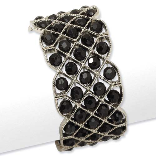 Silver-tone Black Crystal Stretch Bracelet