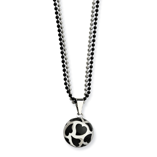 Stainless Steel Black Enamel Hearts 24in Necklace chain