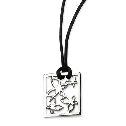Stainless Steel Polished Square w/Flowers 22in Cord Necklace chain