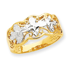 14K Gold & Rhodium Diamond Cut Wave Ring