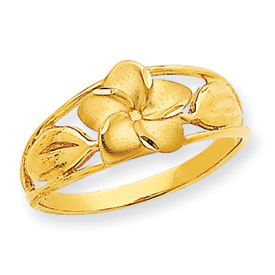 14K Gold Satin & Diamond-Cut Plumeria Ring