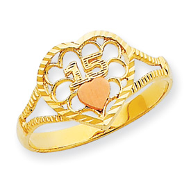 14K Two-tone Gold Diamond Cut 15 Heart Ring