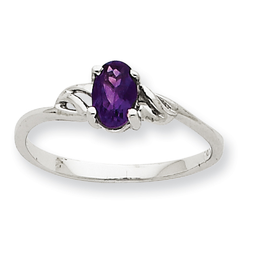 10k White Gold Polished Geniune Amethyst Birthstone Ring