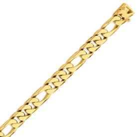 14K Gold 11mm Hand Polished Figaro Link Bracelet