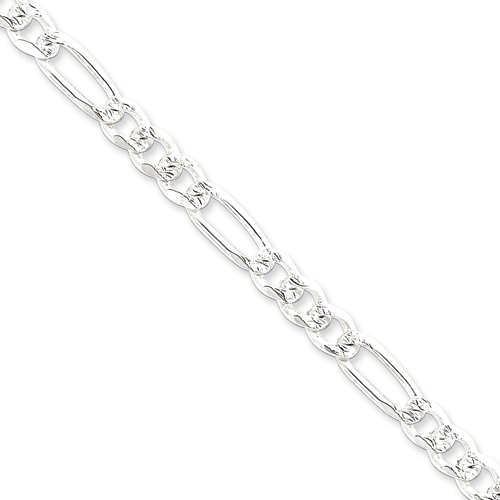 Sterling Silver 7mm Pave Flat Figaro Chain bracelet