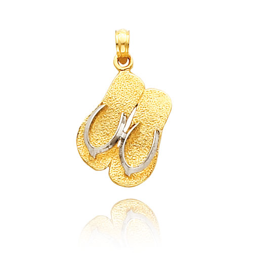 14K Yellow Gold & Rhodium Textured Double Flip Flop Pendant