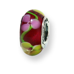 Sterling Silver Reflections Red Floral Murano Glass Bead