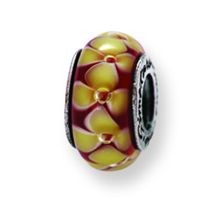 Sterling Silver Reflections Yellow Floral Murano Glass Bead