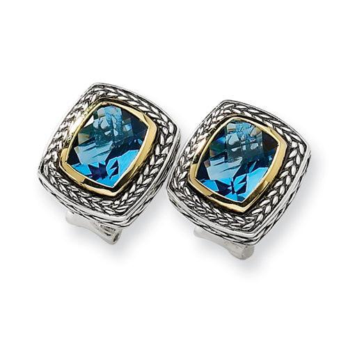 Sterling Silver w/14ky 10X8mm Blue Topaz Omega Back Post Earrings