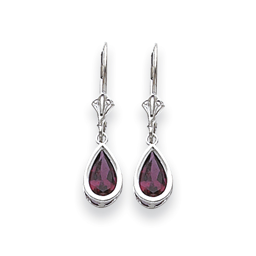 14k White Gold 8x5mm Pear Rhodalite Garnet leverback earring