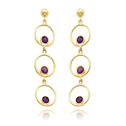 Picture of 14K Gold Amethyst Triple Drop Circle Dangle Post Earrings
