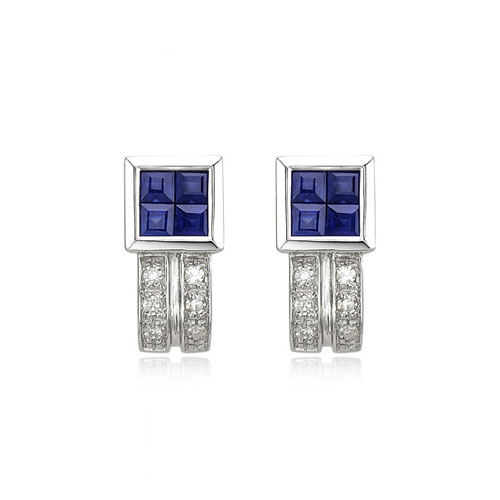 Cushion Cut Blue Topaz With White Gold Diamond Earrings