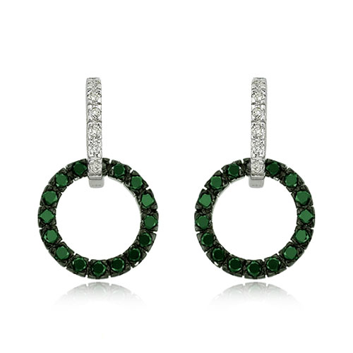 Add some color to your ears with this Emerald and Diamond pair. An Emerald-studded circle hangs from a Diamond-studded section of White Gold to add contrast and shine. Wear alone or with your favorite Diamond jewelry.