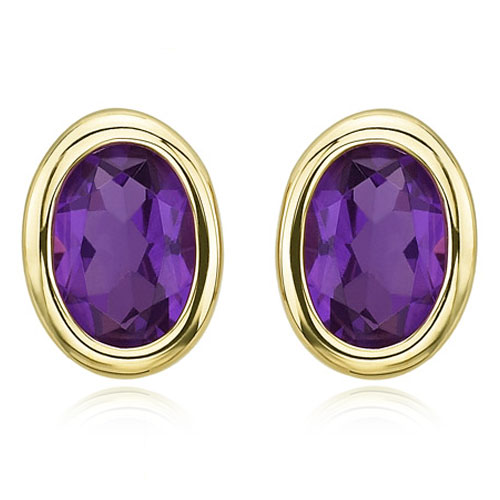 Picture of Oval Shape Amethyst Bezel Set Studs
