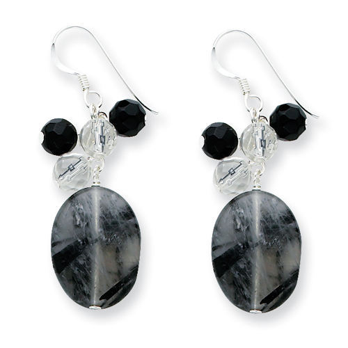 Picture of Sterling Silver Blk Agate/Jet Crystal/Quartz/Rutilated Tourmaline Earrings
