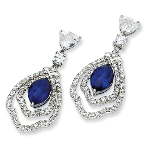 Sterling Silver Marquise Synth Sapphire & CZ Dangle Post Earrings