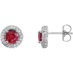 14kt White Ruby Pair Ruby and 3/8 Diamond Earrings