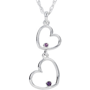 Sterling Silver NECKLACE Complete with Stone ROUND 01.50 AND 01.75 MM AMETHYST Polished 18" DOUBLE HEART NECKLACE