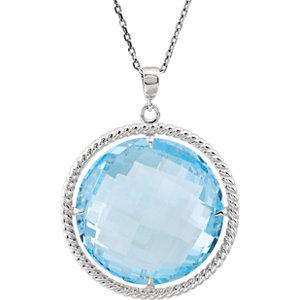 Sterling Silver NECKLACE Complete with Stone ROUND 20.00 MM SKY BLUE TOPAZ Polished 18 INCH NECKLACE