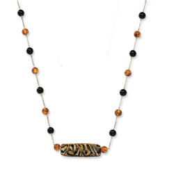 Picture of 14K Gold Murano Glass Bead, Amber & Onyx Necklace