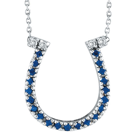 14K White Gold .19ct Sapphire Horseshoe & .04ct Diamond Pendant Necklace