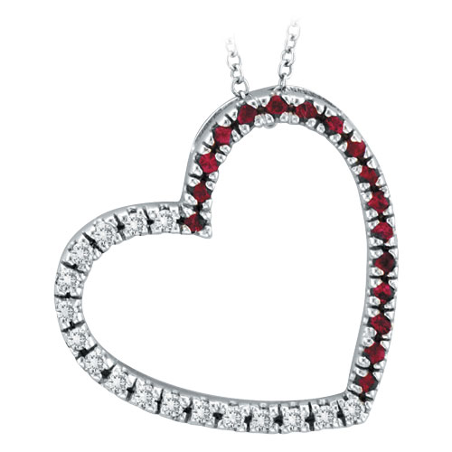 Picture of 14K White Gold .20ct Diamond & .20ct Pink Sapphire Slanted Heart Pendant Necklace
