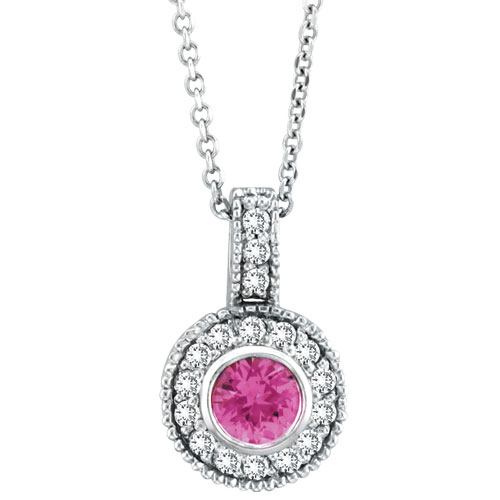 14K White Gold .40ct Pink Sapphire & .22ct Diamond Pendant On Cable Chain Necklace