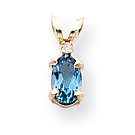 14K Gold Diamond & Blue Topaz Birthstone Pendant