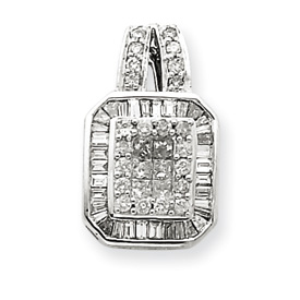 14K White Gold Emerald Cut Diamond Pendant