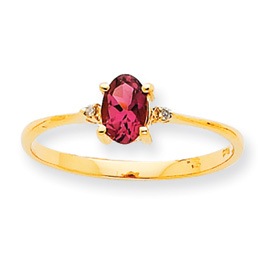14K Gold Diamond & Pink Tourmaline October Birthstone Ring