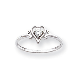 14K White Gold April White Topaz Birthstone Heart Ring