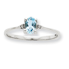14K White Gold Diamond & Aquamarine March Birthstone Ring