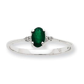 14K White Gold Diamond & Emerald May Birthstone Ring