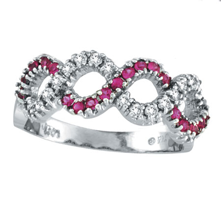 Picture of 14K White Gold Pink Sapphire and Diamond Swirl Ring
