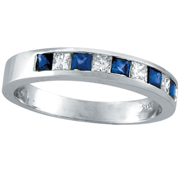 Picture of 14K White Gold Sapphire and Diamond Princess Cut Band Ring