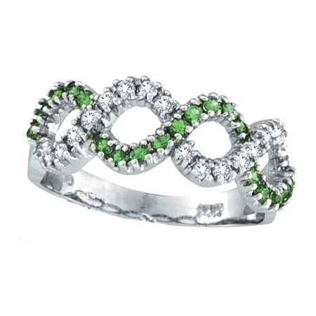 14K White Gold Tsavorite and Diamond Swirl Ring