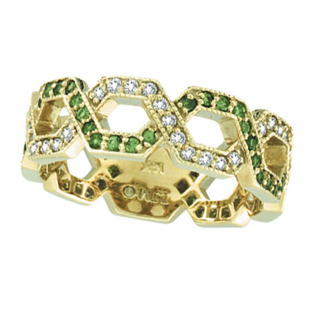 Picture of 14K Yellow Gold .37ct Tsavorite & .34ct Diamond Open Hexagonal-Shaped Eternity Ring