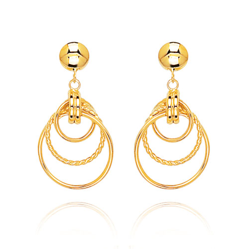 Picture of 14K Polished & Twisted Three Circle Dangle Earrings