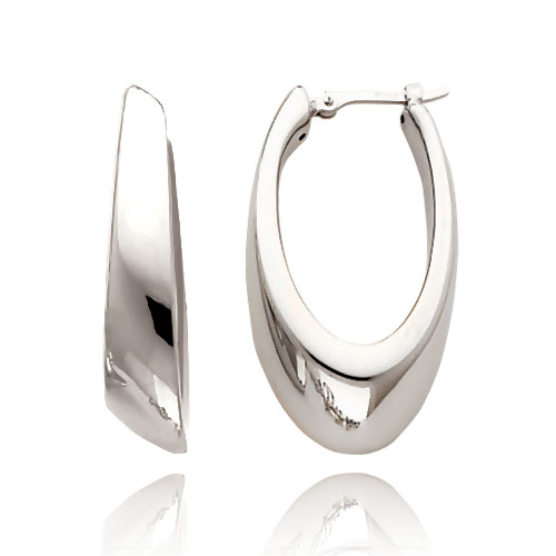 Picture of 14K White Gold Tapered Slanted Oval Hoop Earrings