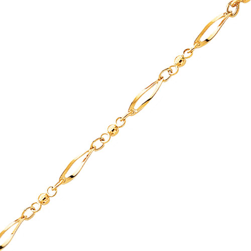 14K Yellow Gold Fancy Link & Mirrored Ball Anklet