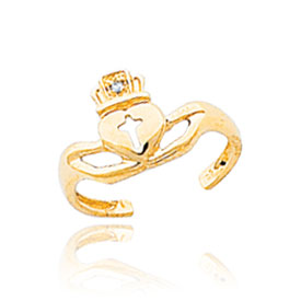 14K Gold AA Diamond Claddagh Toe Ring