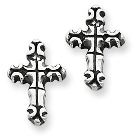 Sterling Silver Antiqued Cross Post Earrings